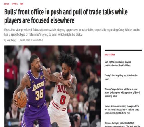 科比怀特就是被兜售的目标之一,根据《芝加哥太阳报》公牛随队记者Joe Cowley报道,球队在交易市场中非常活跃,科比怀特是在交易讨论中频繁被提及的对象。