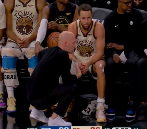 进入下半场,康宁汉姆滑翔飞扣,杜伦顶着穆迪打成2+1,活塞很快就拉开20分分差。库里依旧打铁,穆迪谁都防不住,被轮流点名。中段穆迪终于命中三分,霍福德内突外投打停活塞,库里绕掩护继续轰三分球,横切高难度反身上篮也中。后半段库里继续强攻,但被对手撞了一下,腿部似乎受伤了。节末波杰姆斯基突然爆发,带队咬住分差,三节打完,勇士95-108落后。勇士官方宣布,库里因右膝酸痛,提前退出比赛。决战第四节,勇士没放弃,希尔德+穆迪下三分雨,康宁汉姆带队继续上分,桑托斯联合希尔德,一路追到只差5分!