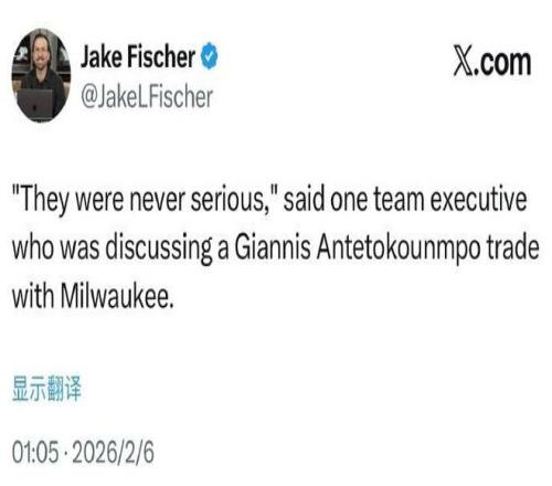 根据名记Shams报道,雄鹿已经正式告知各支球队,他们将在交易截止日前留下字母哥。至于另一位名记Jake Fischer补充报道表示,一位与雄鹿讨论过字母哥交易的球队高管透露,雄鹿从未与其他球队认真讨论过关于字母哥的交易。