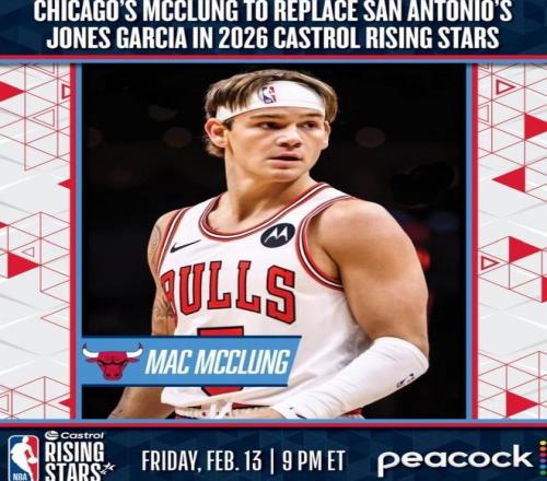 北京时间2月8日,NBA官方宣布,芝加哥公牛后卫麦克朗将顶替赛季报销的马刺后卫加西亚,参加2026年NBA全明星新秀赛。只是麦克朗此前宣布不参加今年的全明星扣篮大赛,无缘冲击扣篮大赛4连冠极为遗憾。