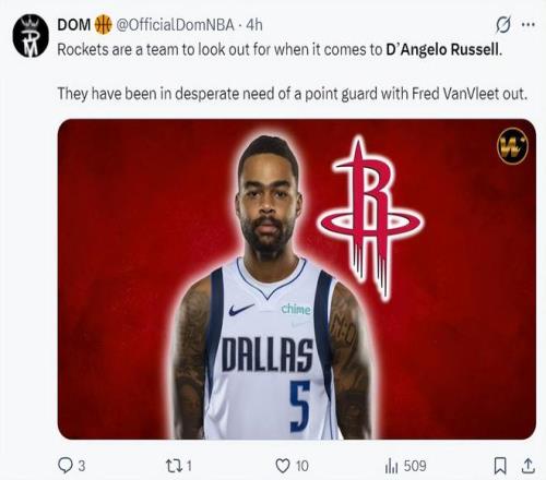 根据美媒Dom的报道,当谈到丹吉洛-拉塞尔这位球员时,火箭队是他值得关注的下家,由于范弗利特的伤病(大概率赛季报销),火箭迫切需要一位控球后卫。