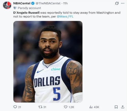 但在几小时后根据独行侠记者的报道,丹吉洛-拉塞尔不会回华盛顿奇才报到,他正在跟奇才队谈买断的事宜。拉塞尔是在安东尼-戴维斯的交易中被送到奇才,他此前在独行侠已经跌出轮换,而且他跟基德的训练理念不合,多次迟到、缺席训练。