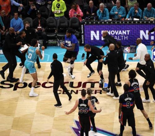 本以为冲突就此结束的,没想到之后布里奇斯又冲了出来,挥拳向杜伦打去,随后2人又发生冲突。而在这个时候,活塞替补席上的斯图尔特冲了上来,他是甩开助教,直接冲向布里奇斯,随后2人发生冲突,连续挥拳击打。裁判和安保好不容易才拉开,之后通过回放给出吹罚,迪亚巴特、布里奇斯、杜伦、斯图尔特四人都被直接驱逐。而从冲突来看,他们都会遭到追加禁赛处罚,特别是斯图尔特从替补席冲上来。
