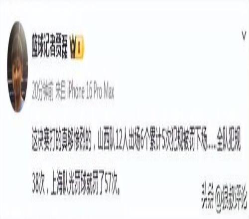 山西12人名单一半被罚下,刘传兴、韩霈瑜、葛昭宝、贾明儒、迪亚洛、秦子龙,全队38次犯规,送给上海57次罚球。