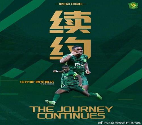 经友好协商一致,北京国安足球俱乐部近期已与球员法比奥正式完成续约。