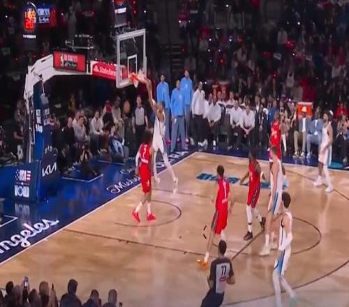 第一场比赛是国际队对阵美国星辰队,文班亚马在比赛一开始转身暴扣得分,随后又命中三分球。在防守端他也相当积极,送出多次大帽的同时还多次飞身干扰对手投篮。
