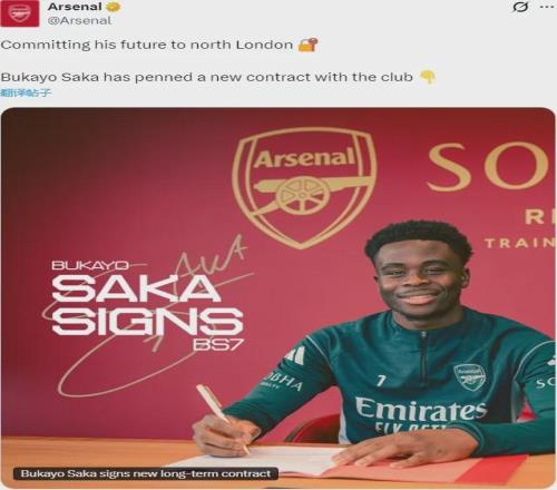 官方:阿森纳宣布和萨卡签下了一份新的长期合同。