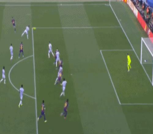 第32分钟,坎塞洛左路45°传中,落点恰到好处,德容插上垫射破门,巴萨还是扩大优势,2-0!