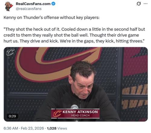 但随着比赛的深入,骑士队的防守伸缩性再度出现问题,正如赛后骑士主帅阿特金森所说,雷霆队本场比赛神准的同时,不断通过突破分球为外线创造机会,骑士没能在收缩防守应对突破后,持续做好对于外线投射的干扰。