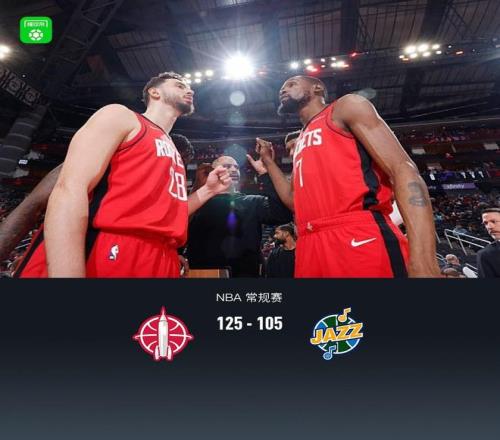 第四节火箭阿隆-霍勒迪拿下7分,爵士森萨博拿下10分,最终火箭125-105战胜爵士