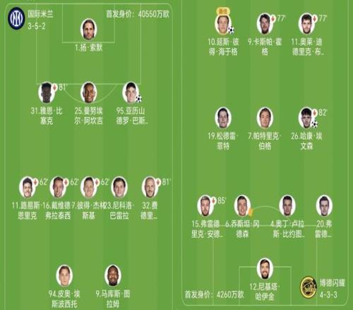 贵为上赛季欧冠亚军,国米无疑是纸面阵容上更强的一方,但首回合却踢了个1-3,齐沃本场派上皮奥-埃斯波西托和马库斯-图拉姆搭档双前锋。