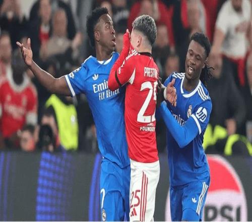 2月18日,欧冠附加赛首回合皇马客场对阵本菲卡的比赛中,皇马前锋维尼修斯进球后以舞蹈庆祝,引发本菲卡球员不满。本菲卡20岁球员普雷斯蒂安尼与维尼修斯对峙时用衣物遮挡嘴部进行辱骂,比赛一度中断。