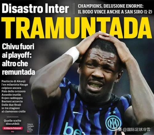国米欧冠出局后,意媒展开了对蓝黑军汹涌、犀利的声讨。