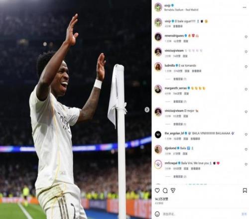 这是维尼修斯连续第5场破门。赛后他在社交媒体晒出角旗杆跳舞庆祝的照片,配文“舞蹈继续!”引发热议。评论区依然充斥着“猴子”和“香蕉”的表情,但数据不会说谎,这是维尼修斯在欧冠淘汰赛打进的第14粒进球,超越内马尔的13球,成为巴西球员欧冠淘汰赛历史射手王。