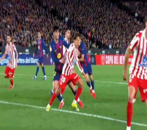 第45+5分钟,佩德里补时造点,拉菲尼亚点射命中,巴萨总比分2-4马竞!