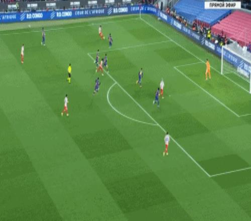 第45+2分钟,略伦特套上传中,卢克曼头槌顶偏