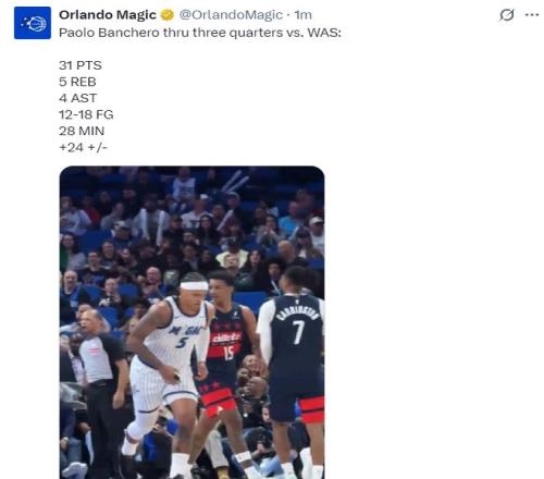 北京时间3月4日,奥兰多魔术队大胜华盛顿奇才队结束二连败。奇才是一支摆烂的球队,上半场只落后魔术三分,可第三节奇才一反常态开始各种眼神防守单节净负13分,末节早早进入垃圾时间。此役班凯罗32分钟就拿到37分追平赛季新高,也是本赛季第六场30+。