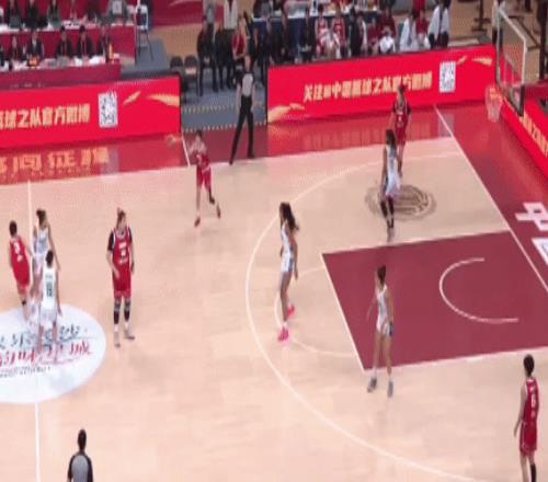 杨舒予冲击篮下助攻给到刘禹彤,后者强打篮下拿分。
