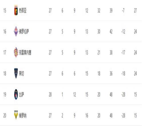 在欧冠资格区附近,竞争已经进入白热化阶段。科莫与罗马同积51分,分别排在第四和第五位,而尤文图斯则以50分紧随其后。从第四名到第六名之间的差距只有1分,争四进入了白热化。