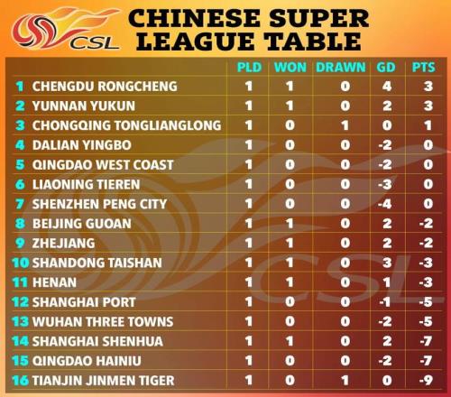 太阳报关注中超新赛季:半数队负分开局,首轮后升班马也可居前列