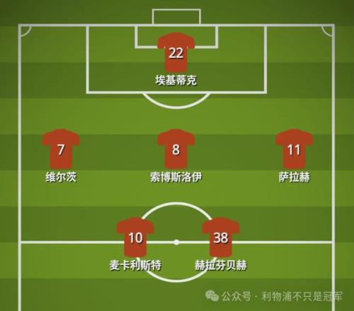 上一场做客魔鬼主场,中前场的逼抢、中后场的稳固更重要,因此利物浦上一场的中前场是下图配置: