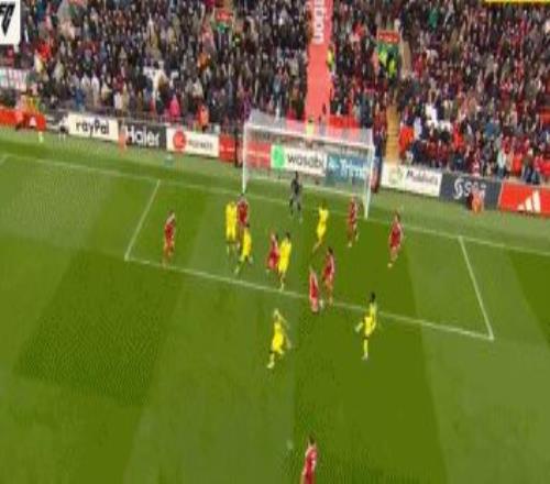 第44分钟,索博斯洛伊传中,范戴克头球摆渡被封堵,随后再次传球,可惜麦卡利斯特反应不及,目送皮球滑门而过。