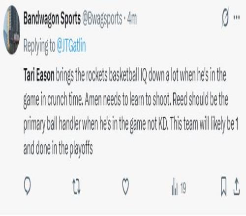 火箭博主:伊森在场一直给火箭负面的影响,他的先发席位应该让给谢泼德。