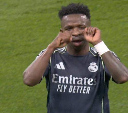 曼城球迷嘲讽丢金球维尼修斯点射破门,做哭泣动作疯狂打脸!