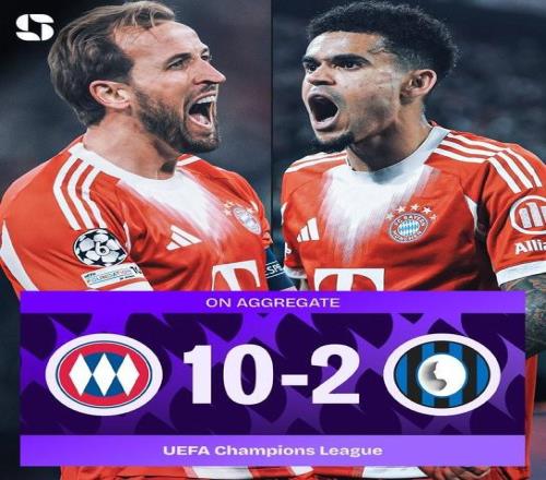 欧冠1/8决赛次回合,拜仁主场4-1战胜亚特兰大,两回合总比分10-2淘汰亚特兰大晋级1/4决赛。