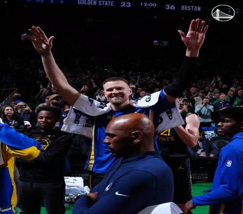 凯尔特人主场播放视频致敬前总冠军成员波尔津吉斯,主场球迷热烈欢迎致意。