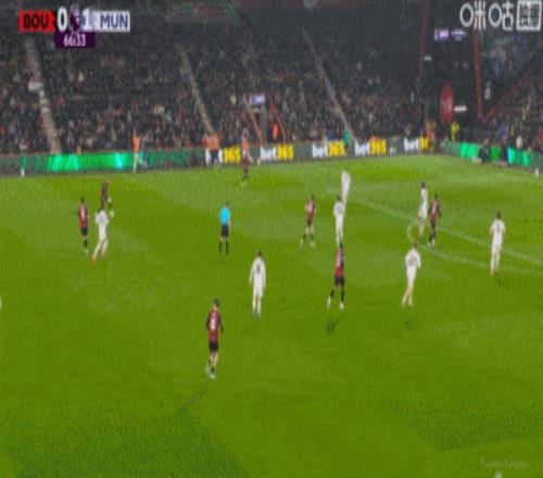 第67分钟,阿玛德禁区内突破被特吕费尔推倒,主裁没有表示,伯恩茅斯顺势反击,特吕费尔左路推进分球,弧顶位置克里斯蒂稍作调整低射破门,此后,VAR介入认定进球有效,伯恩茅斯追平比分。