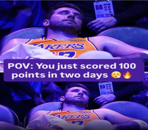 对阵热火队的比赛赛后,美媒晒出东契奇累瘫在替补席:当你背靠背两场比赛砍下100分。