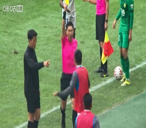这次错判,并非只有申花主帅一人吃到黄牌,其实还有申花替补球员王世龙。他也因为对这个判罚表达了不满,也吃到马宁的黄牌一张(下图)。王世龙先是感觉很无奈,裁判错判了不仅不能表达异议,说了反而领到一张"黄宝石卡"。