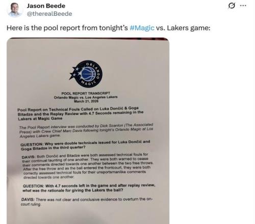 本场比赛的主裁Marc Davis赛后被问及这吹罚时也公开给出解释:“东契奇与比塔泽是因为持续互相挑衅才被同时吹罚技术犯规。”