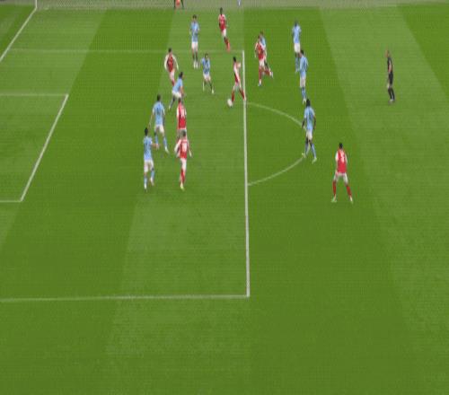 第87分钟,热苏斯头球吊射,皮球越过特拉福德头顶,砸在横梁上。