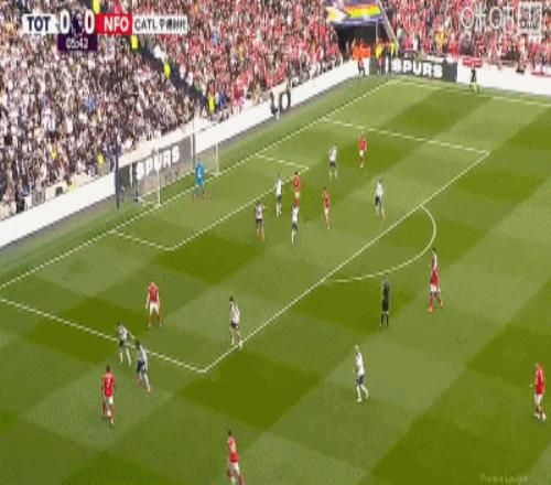 第45分钟,伊戈尔-热苏斯角球中头球破门,森林1-0领先热刺!