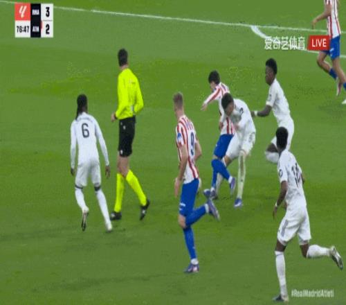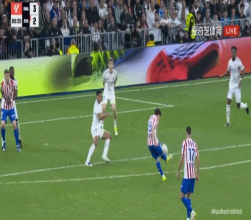 下半场皇马进攻有起色,维尼修斯点射,巴尔韦德抢断后推射得手;替补出场的莫利纳轰入超级世界波扳平;维尼修斯梅开二度再度反超;巴尔韦德染红被罚下;小蜘蛛远射中柱。最终皇马3-2逆转马竞。