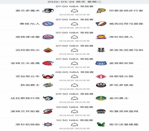 北京时间3月24日,明天的NBA常规赛有10场比赛,雷霆、湖人、马刺、火箭等球队出战,但是央视不直播,腾讯体育、咪咕视频等APP要进行直播,关注NBA赛事的球迷不要错过!