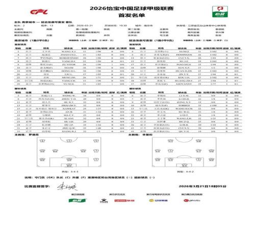 南京城市与延边龙鼎的比赛在3月21日进行,中甲联赛官方微博赛前发布的首发名单中,延边外援乔瓦尼是在其中的,但更新后他的名字出现在了替补席,首发的是王子豪。