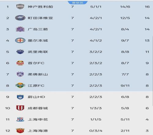 亚冠精英赛7轮积分榜:中超2队提前出局,东亚区8强已定5席