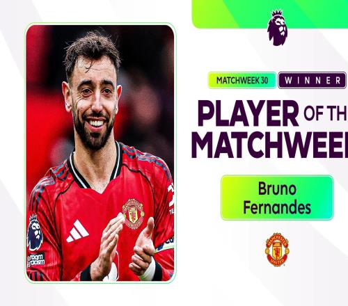 官方:布鲁诺费尔南德斯当选英超第30轮最佳球员