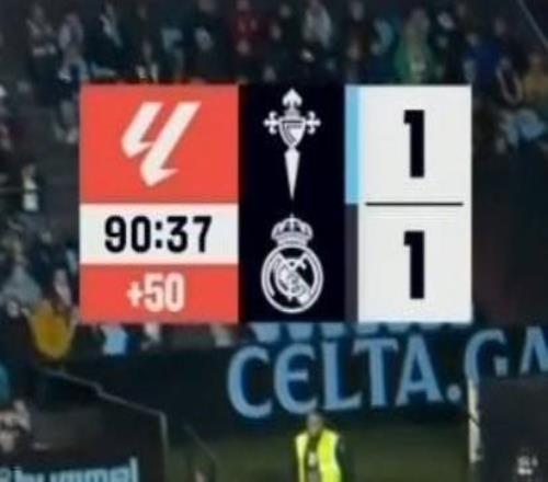 多少皇马vs塞尔塔导播在记分牌上给了50分钟伤停补时