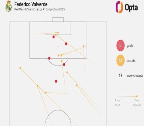 巴尔韦德本赛季已参与17球,为皇马生涯单赛季并列第二多