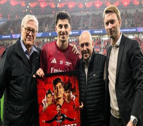 勒沃库森赛前赠送纪念礼物欢迎哈弗茨:欢迎回来,凯