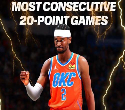 追平张伯伦!SGA连续126场20+成历史首人,远古神迹也挡不住他