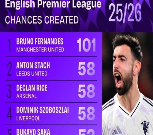 本赛季英超创造机会数:B费101次遥遥领先,赖斯、索博均58次次之