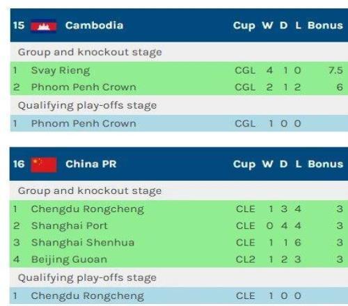中超亚冠技术分再创新低:跌至东亚第10被柬埔寨联赛反超