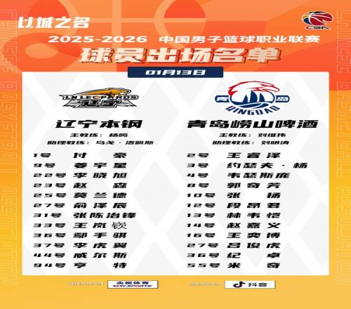 体育播报1月13日宣 今天晚上,辽宁男篮将在主场迎战青岛男篮。