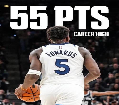 这场比赛,狼王爱德华兹打出了赛季最强一战:全场出战40分钟,投篮33中19,三分16中9,罚球9中8,爆砍55分4篮板3助攻,正负值+8。