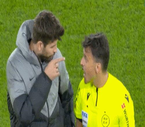 2022年11月,巴萨客场挑战奥萨苏纳。莱万染红,皮克指着吉尔-曼萨诺破口大骂:“你XX真是耻辱,最烂的裁判。”皮克染红,以戏剧性的方式结束职业生涯,这一幕也成为巴萨的名场面之一。